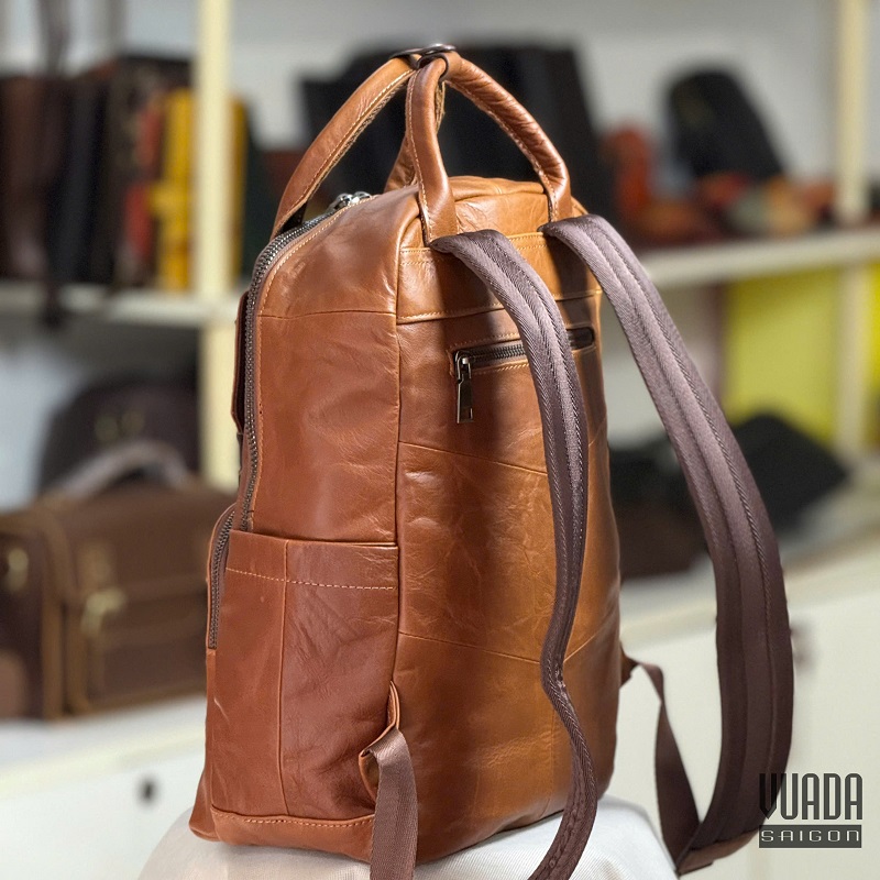 Balo được làm bằng chất liệu da cao cấp, được giữ nguyên nét tự nhiên, đảm bảo độ bền chắc theo thời gian.