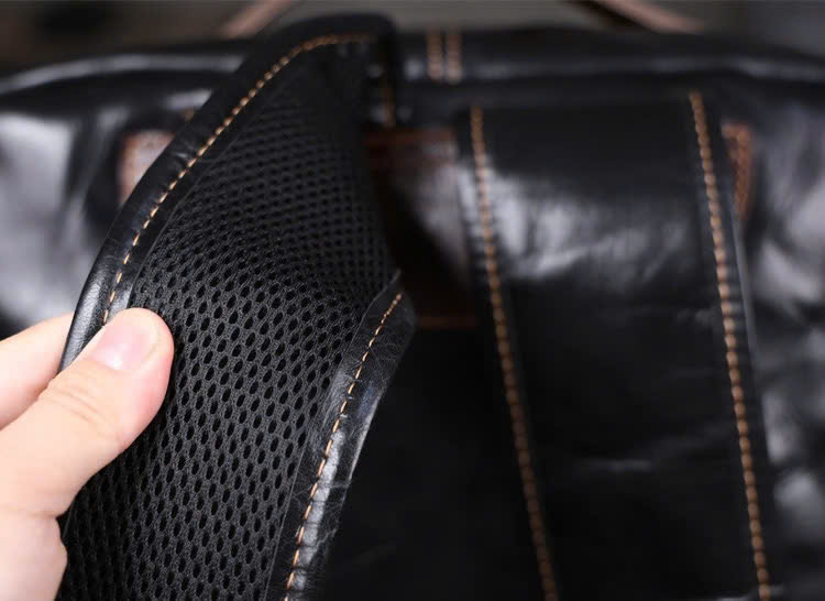 Ngoài ra, phần quai đeo và lưng balo được may chắc chắn, có đệm êm ái giúp giảm áp lực khi đeo lâu. Các chi tiết khóa kéo YKK, đường chỉ may và viền da đều được gia công tỉ mỉ, đảm bảo tính thẩm mỹ cũng như độ bền trong quá trình sử dụng.