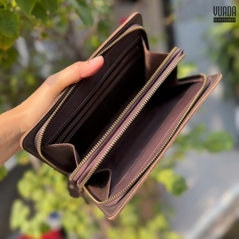Clutch Da Sáp 2 Ngăn Khóa Kéo VD72 thiết kế phù hợp với mọi mục đích sử dụng hàng ngày, thiết kế 2 ngăn khóa kéo, phom vừa tay cầm, khoá kéo màu vàng đồng chắc chắn và quai móc vào tay tiện lợi.