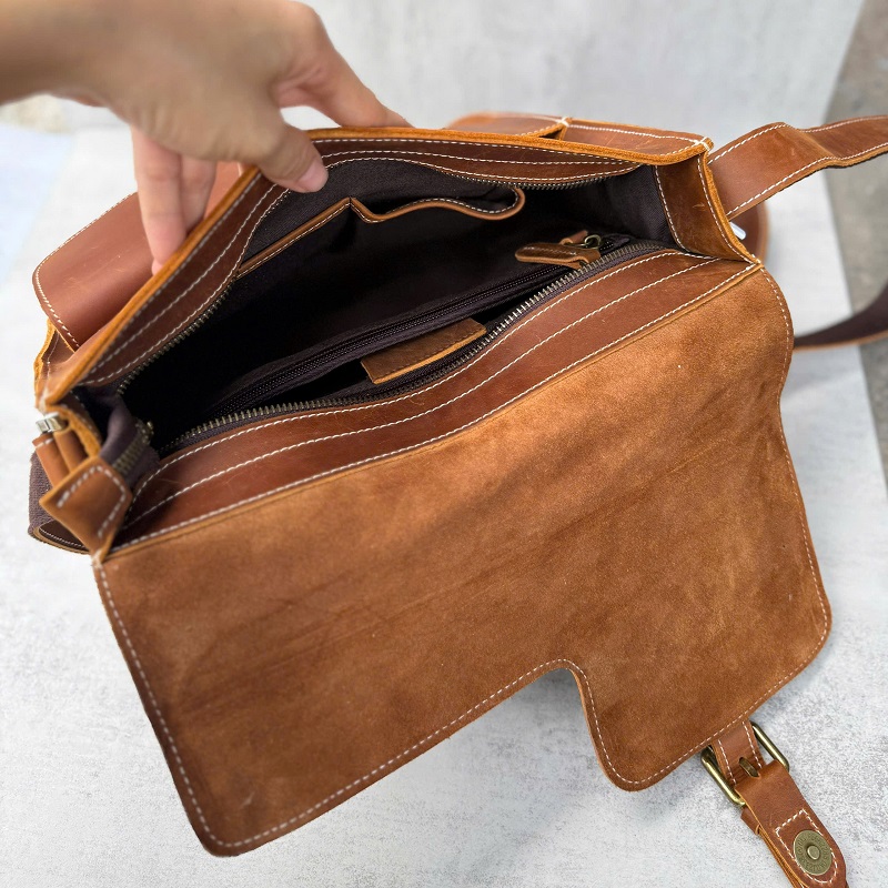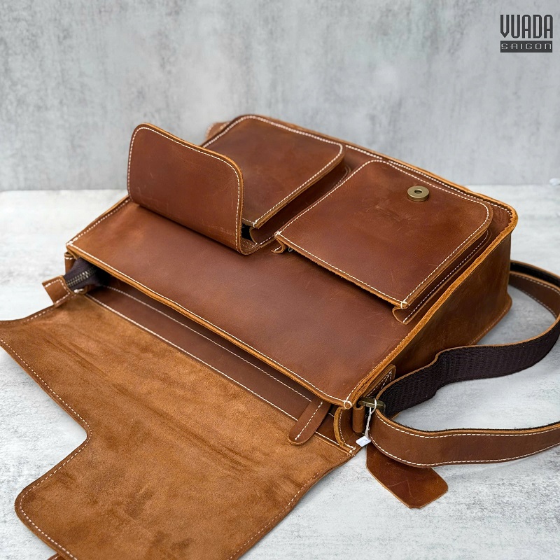 Túi được làm bằng da Bò Sáp miếng dầy cao cấp, càng sử dụng lâu da lại càng bóng đẹp hơn. Lớp lót bên trong túi được làm bằng vải lót chuyên dụng cao cấp.
