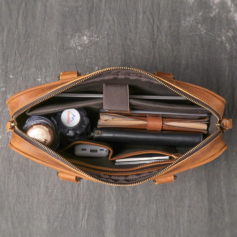 Túi đi kèm dây đeo chéo tháo rời, có thể xách tay hoặc đeo vai linh hoạt. Là lựa chọn hoàn hảo cho dân văn phòng, doanh nhân hoặc người làm sáng tạo yêu thích sự tinh tế và bền bỉ từ da thật.