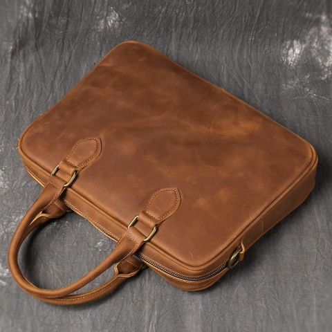 Túi Công Sở Da Sáp Tinh Giản - Phom Nhỏ Cho Laptop 13" CSD136 mang phong cách tối giản nhưng vẫn đầy tinh tế. Chất da sáp dày dặn, lên màu nâu da bò tự nhiên sang trọng, càng sử dụng càng bóng đẹp theo thời gian.