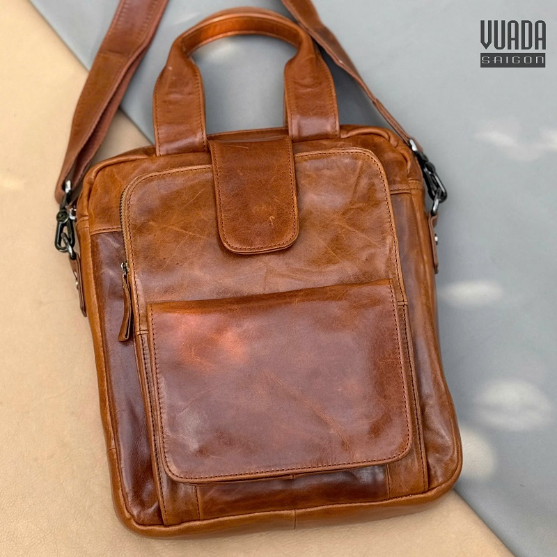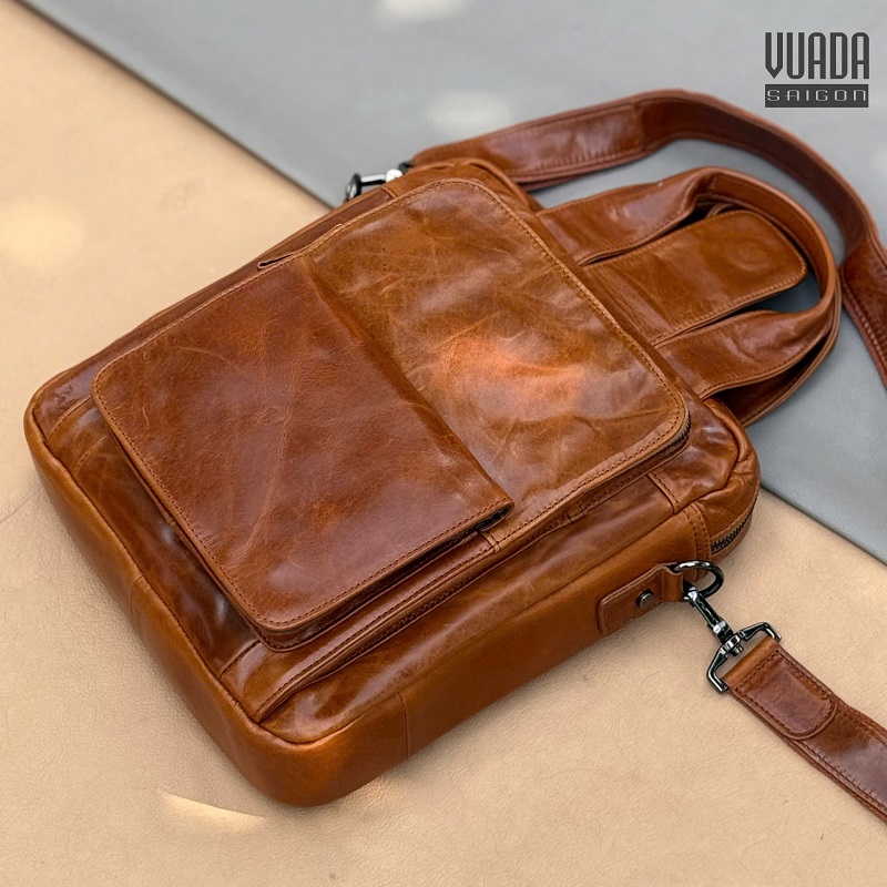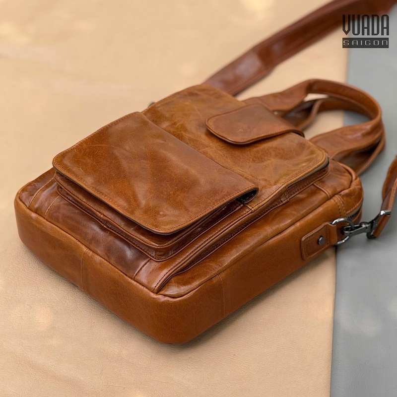 Túi được làm từ da bò, bề mặt da mềm mịn, có độ bóng tự nhiên và càng dùng càng đẹp. Chất da dày dặn và bền bỉ.