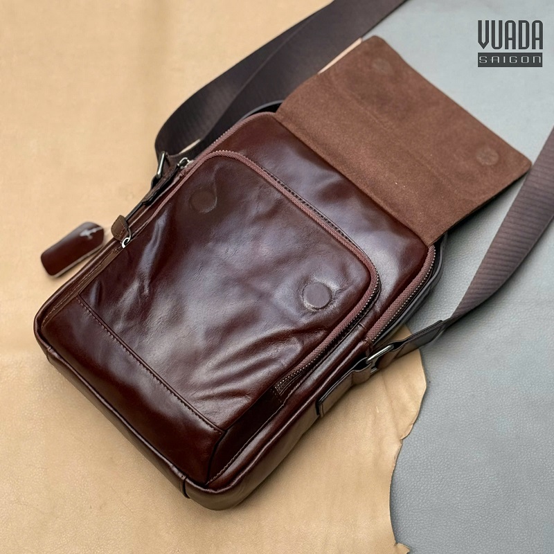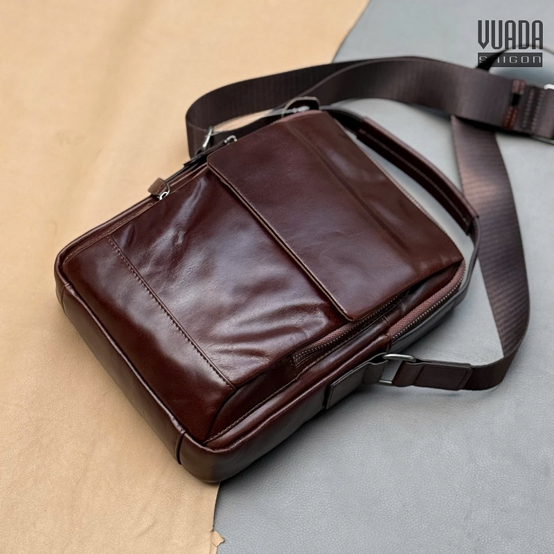 Túi được làm từ da bò cao cấp, bề mặt mềm mại, láng mịn và đều màu. Chất da không chỉ tạo cảm giác sang trọng mà còn bền bỉ theo thời gian, càng sử dụng càng đẹp và giữ form tốt.