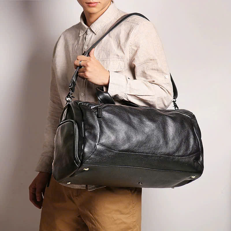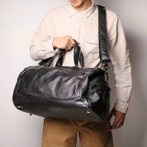 Túi Hành Lý Màu Đen Da Mềm Size 50 HLD22 thiết kế tinh giản, đường cắt hiện đại, chất liệu da thật cao cấp, chất da có độ bóng nhẹ và mềm mại, tông đen mạnh mẽ mang đến trải nghiệm thời trang phóng khoáng và tự tin.
